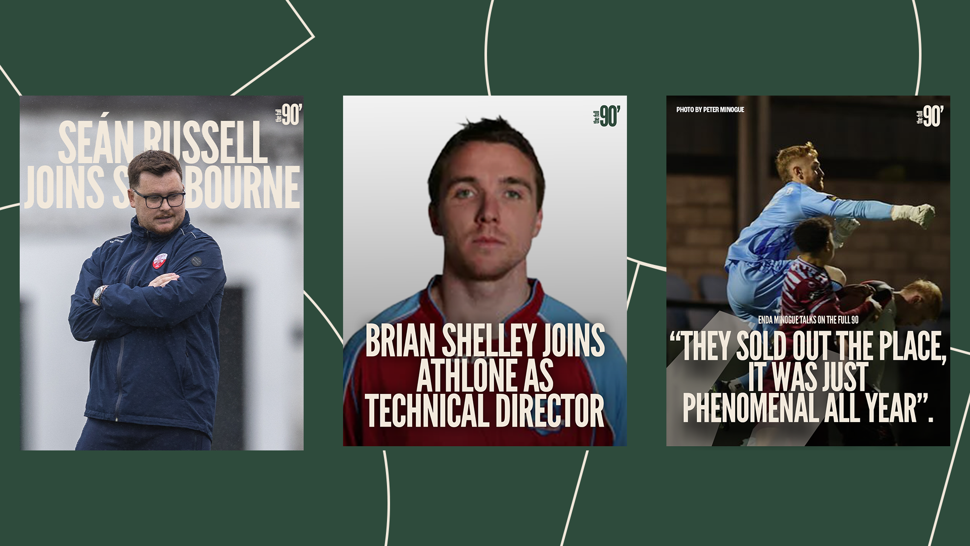 The Full 90 is a fast-growing Irish football media page that delivers breaking news, transfer updates, matchday coverage, and opinion pieces across the League of Ireland. Its tone is direct, quick, and grounded in the reality of Irish football culture. The platform aims to feel reliable, plugged-in, and visually modern, with graphics that communicate information instantly and cleanly.